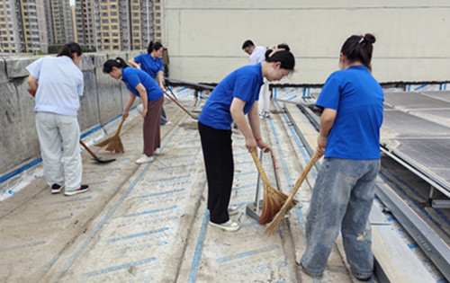 近日,為進一步筑牢防汛安全防線,支部書記發(fā)揮頭雁效應(yīng),組織全體黨員干部開展“防汛保安全”主題黨日活動;顒蝇F(xiàn)場,黨員干部手持掃把、鐵鍬等工具,對公司庫房樓頂展開全面排查整治。針對往年因垃圾堵塞導(dǎo)致樓頂積水、庫房滲漏的18個落水口及300余平方米的屋面進行深度清掃,全面疏通排水管道,將樓頂堆積的雜物清理一空。