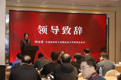 中國(guó)紡織職工思想政治工作研究會(huì)會(huì)長(zhǎng)邢冠蕾出席會(huì)議并致辭。陜西省思想政治工作研究會(huì)、陜西省總工會(huì)、西安工程大學(xué)等領(lǐng)導(dǎo)同志以及陜西省紡織職工思想政治工作研究會(huì)全體理事、各紡織服裝企事業(yè)單位領(lǐng)導(dǎo)、紡織服裝企業(yè)優(yōu)秀班組長(zhǎng)代表、西安工程大學(xué)馬克思主義學(xué)院“夢(mèng)桃精神 代代相傳”全國(guó)紡織思想政治教育研究基地研究成員110余人參加了此次會(huì)議。會(huì)議由陜西省紡織職工思想政治工作研究會(huì)會(huì)長(zhǎng)侯代會(huì)主持。