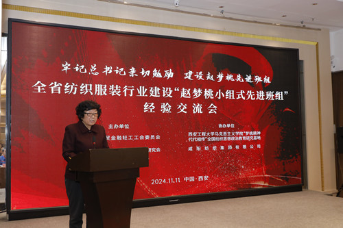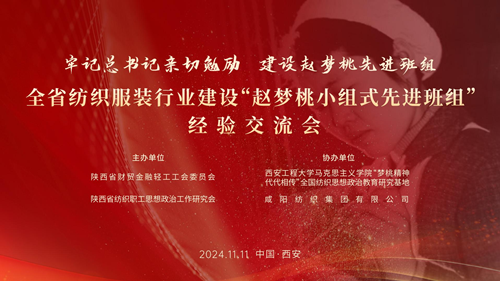 為深入貫徹落實(shí)習(xí)近平總書記對(duì)趙夢(mèng)桃小組的親切勉勵(lì),進(jìn)一步推動(dòng)紡織行業(yè)“科技、綠色、時(shí)尚”高質(zhì)量發(fā)展,11月12日,由陜西省財(cái)貿(mào)金融輕工工會(huì)、陜西省紡織職工思想政治工作研究會(huì)主辦,西安工程大學(xué)馬克思主義學(xué)院“夢(mèng)桃精神 代代相傳”全國(guó)紡織思想政治教育研究基地、咸陽(yáng)紡織集團(tuán)有限公司承辦的陜西省紡織服裝行業(yè)建設(shè)“趙夢(mèng)桃小組式先進(jìn)班組”經(jīng)驗(yàn)交流會(huì)在西安成功舉辦。