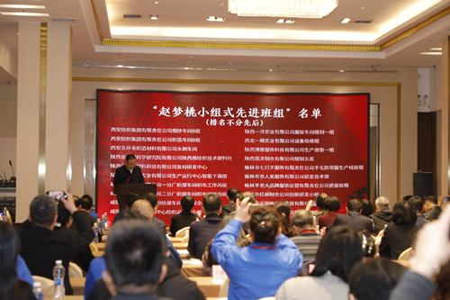 陜西財(cái)貿(mào)金融輕工工會(huì)主席趙亮宣讀了《關(guān)于公布“趙夢(mèng)桃小組式先進(jìn)班組”名單的通知》,西安紡織集團(tuán)有限責(zé)任公司細(xì)紗車間B班等20個(gè)班組典型經(jīng)驗(yàn)被認(rèn)定為2024年陜西省紡織服裝行業(yè)“趙夢(mèng)桃小組式先進(jìn)班組”。