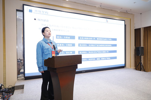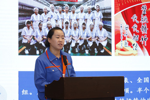 交流會(huì)上,咸陽(yáng)紡織集團(tuán)有限公司一分廠趙夢(mèng)桃小組 組長(zhǎng)王丹以《以“八過(guò)硬”固本強(qiáng)基 趙夢(mèng)桃小組花開新時(shí)代》為主題,就五年來(lái)如何傳承弘揚(yáng)“夢(mèng)桃精神”進(jìn)行了總結(jié)匯報(bào)。