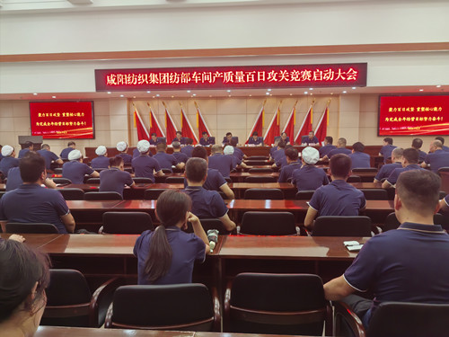 2025年8月4日下午,咸陽紡織集團召開紡部車間產(chǎn)質(zhì)量百日攻關(guān)競賽啟動大會。集團領(lǐng)導(dǎo)班子成員,一分廠、二分廠、秦越紡織副中層及以上管理人員,集團部室負(fù)責(zé)人,各生產(chǎn)單元紡部車間輪班長、設(shè)備維修人員代表等齊聚一堂,共同吹響了紡部車間產(chǎn)質(zhì)量百日攻關(guān)的沖鋒號角。