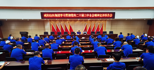 為深入學(xué)習(xí)宣傳貫徹黨的二十屆三中全會(huì)精神,8月30日上午,咸陽紡織集團(tuán)黨委組織召開黨的二十屆三中全會(huì)精神宣講會(huì),特邀咸陽市委黨校黨史教研室主任、副教授葉明亮進(jìn)行專題宣講。宣講會(huì)由集團(tuán)公司黨委副書記、副董事長范斯特主持。集團(tuán)公司及下屬子公司黨委班子成員,全體副中層及以上黨員干部、部分黨員代表參加了會(huì)議。