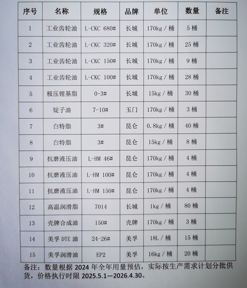 咸陽(yáng)紡織集團(tuán)有限公司擬對(duì)常規(guī)工業(yè)用油進(jìn)行公開(kāi)招標(biāo),歡迎符合資格條件的、有能力提供所需物資和服務(wù)且具有良好信譽(yù)的供應(yīng)商積極踴躍投標(biāo)。 一、招標(biāo)項(xiàng)目:各種工業(yè)用油 二、招標(biāo)編號(hào)2025-4-2 三、招標(biāo)原則:堅(jiān)持雙方平等互利的原則 四、招標(biāo)內(nèi)容、數(shù)量及要求